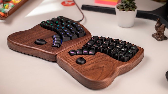 Designed from the ground up to work the way your hands do, the Model 100 features 64 hot-swappable mechanical keyswitches, RGB LEDs under each custom-sculpted keycap, and open source firmware, all housed in a precision-milled adjustable hardwood enclosure. -
